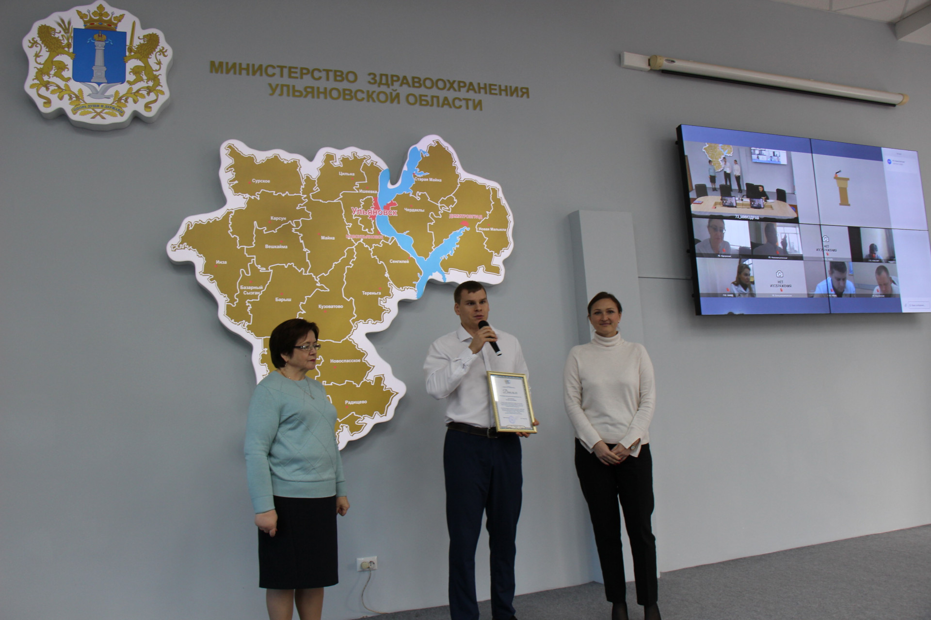 На Совете Медицинской Палаты 25 ноября Председатель Медицинской Палаты Ульяновской области В.Г. Караулова и Директор департамента делопроизводства, информационной и кадровой политики в здравоохранении Министерства здравоохранения Ульяновской области Е.С. Семенова вручили дипломы победителям Конкурса на получение именной стипендии Медицинской Палаты Ульяновской области.